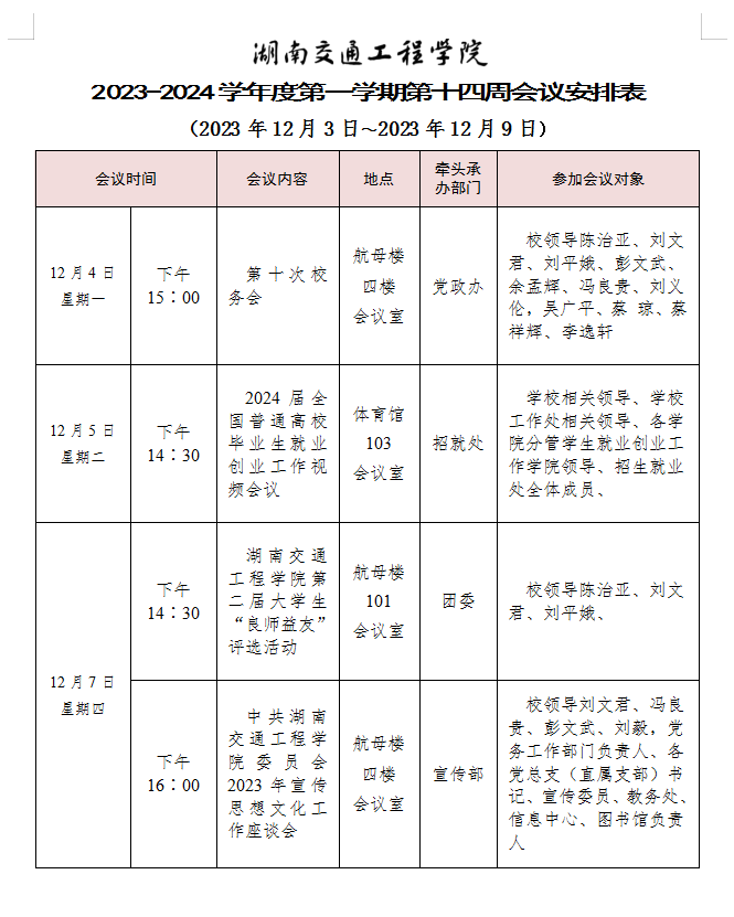 beat365手机版官方网站 2023-2024学年度第一学期第十四周会议安排表