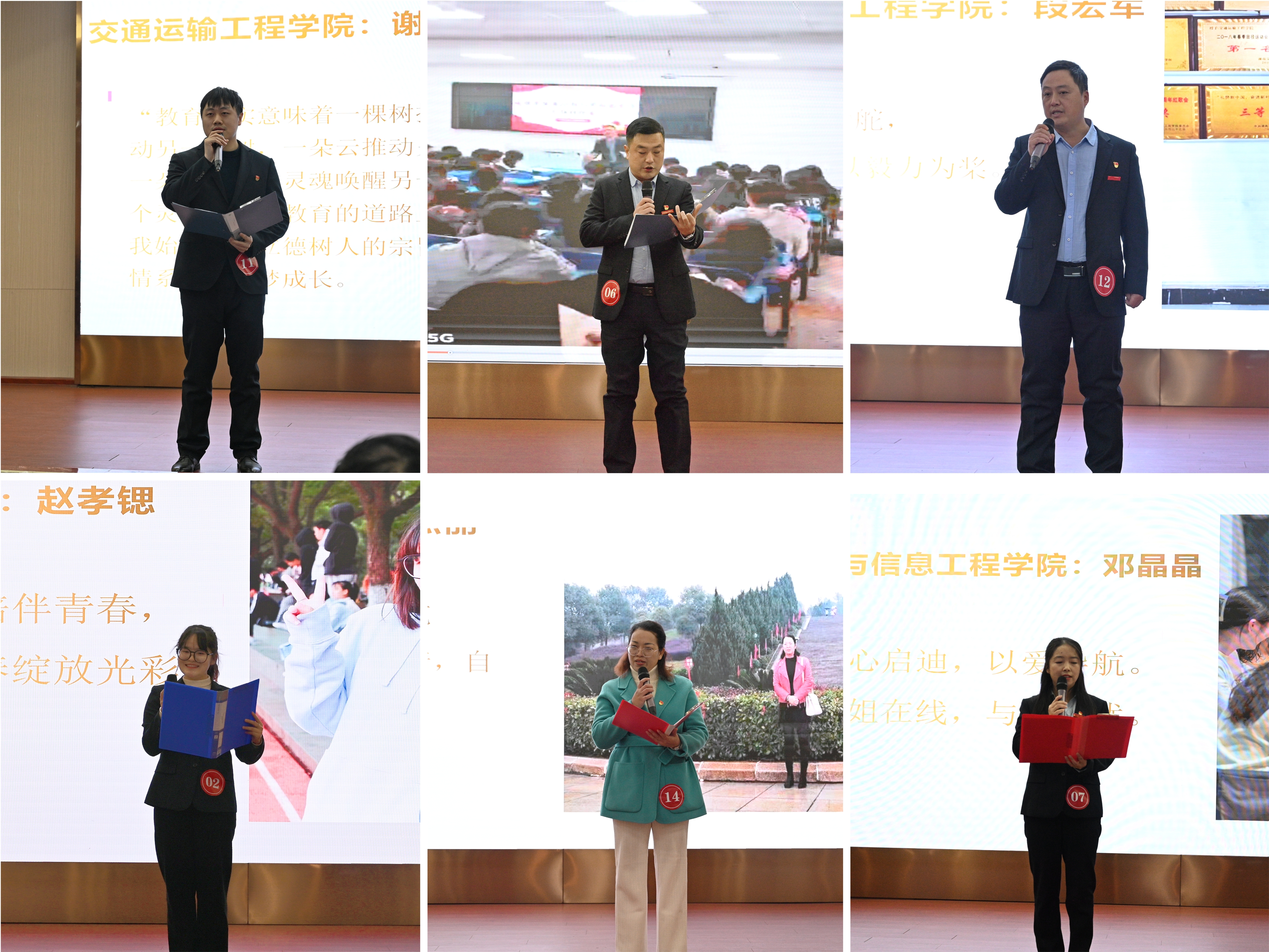 经过资格审查和材料评审,各学院推选的17名辅导员候选人参加本次考核答辩。根据答辩要求,17名专职辅导员围绕全年基本工作完成情况、工作亮点、特色成果、工作思考及建议逐一上台进行答辩展示。评委们结合日常思想教育、日常管理工作、工作态度、班风学风状况和个人答辩表现等方面,多层次、多角度地对各辅导员进行评定。经济管理学院赵孝锶,交通运输工程学院王刚、段宏军、谢卓霖,电气与信息工程学院张敬会、邓晶晶, 医学技术与护理学院陈文蓉,机电工程学院曹亮明等8位老师入围2023年辅导员年度人物。