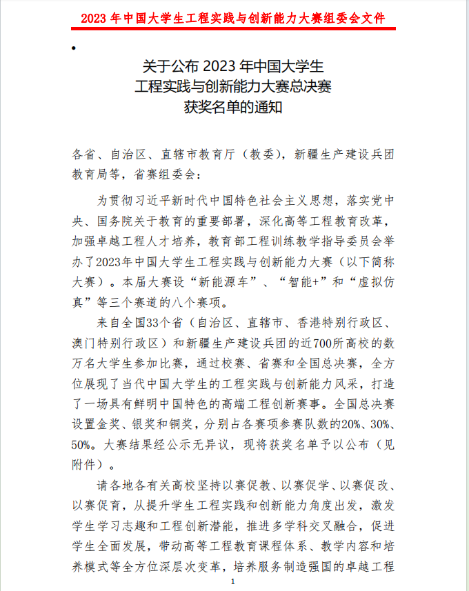 (转发)关于公布2023年中国大学生工程实践与创新能力大赛总决赛获奖名单的通知