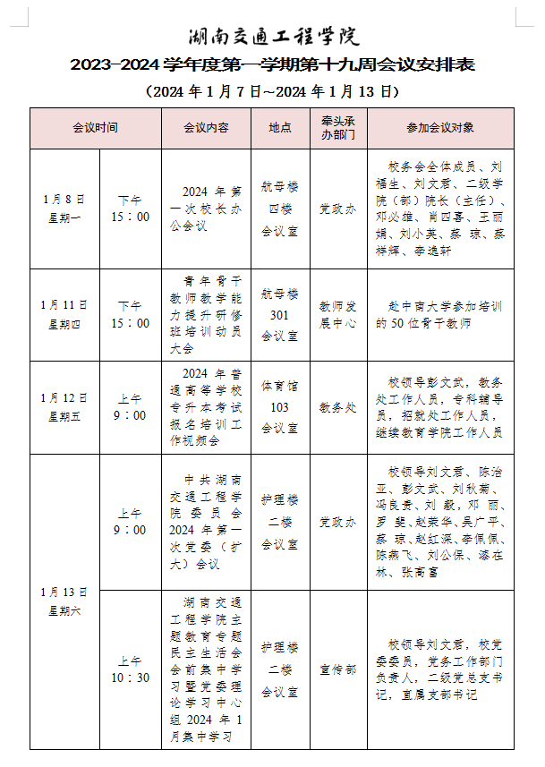 beat365手机版官方网站2023-2024学年度第一学期第十九周会议安排表