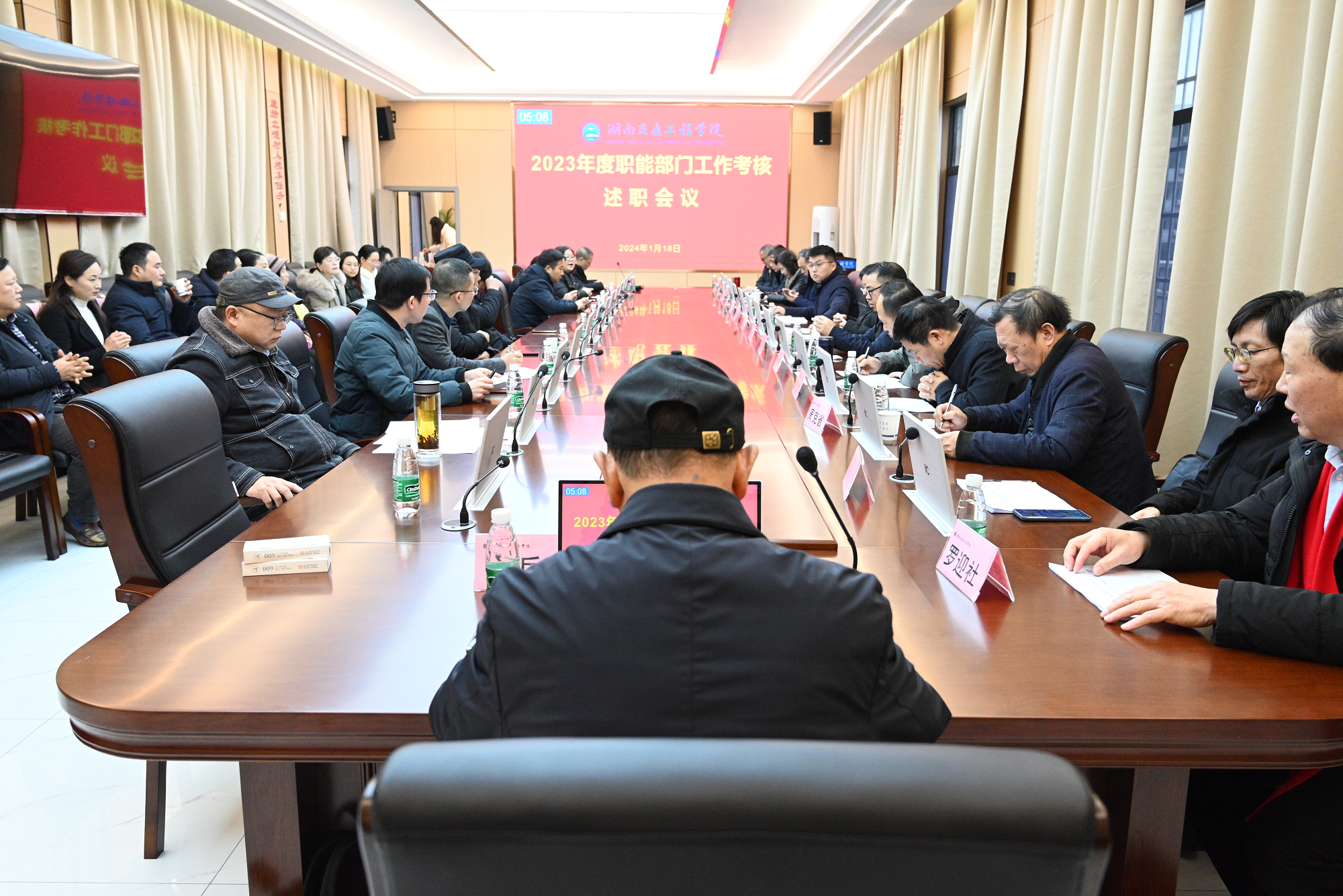 10个教学院(部)、19个职能部门负责人依次进行述职和提问回答。二级学院(部)围绕教学工作思路与地位、师资队伍、专业与课程建设、教研教改、教学管理、培养效果等6 项一级指标、18 项二级指标、40 项主要观测点进行汇报。有的还汇报了“教学工作创新”和“突出业绩”等自选申报项目。各职能部门以目标管理任务书主要考核内容为纲,以实际完成情况为本,比照目标任务,亮明成果、总结经验,有思路、有举措、有数据、有成效;查摆不足、明确目标,对标对表分析本部门发展现状,充分展示了各职能部门全年的工作状态与业绩。党政职能部门及教辅机构围绕党建工作、重点工作、管理创新和特色等内容,汇报了年度重点目标任务完成情况、工作亮点等,并针对自身不足,提出2024年的工作举措。教学科研管理部门重点汇报了本科人才培养、教研教改、教学管理、培养效果、科学研究与社会服务、人才队伍建设以及合格评估建设等各项任务落实情况及特色工作,分析了工作中存在的短板,提出2024年的努力方向。