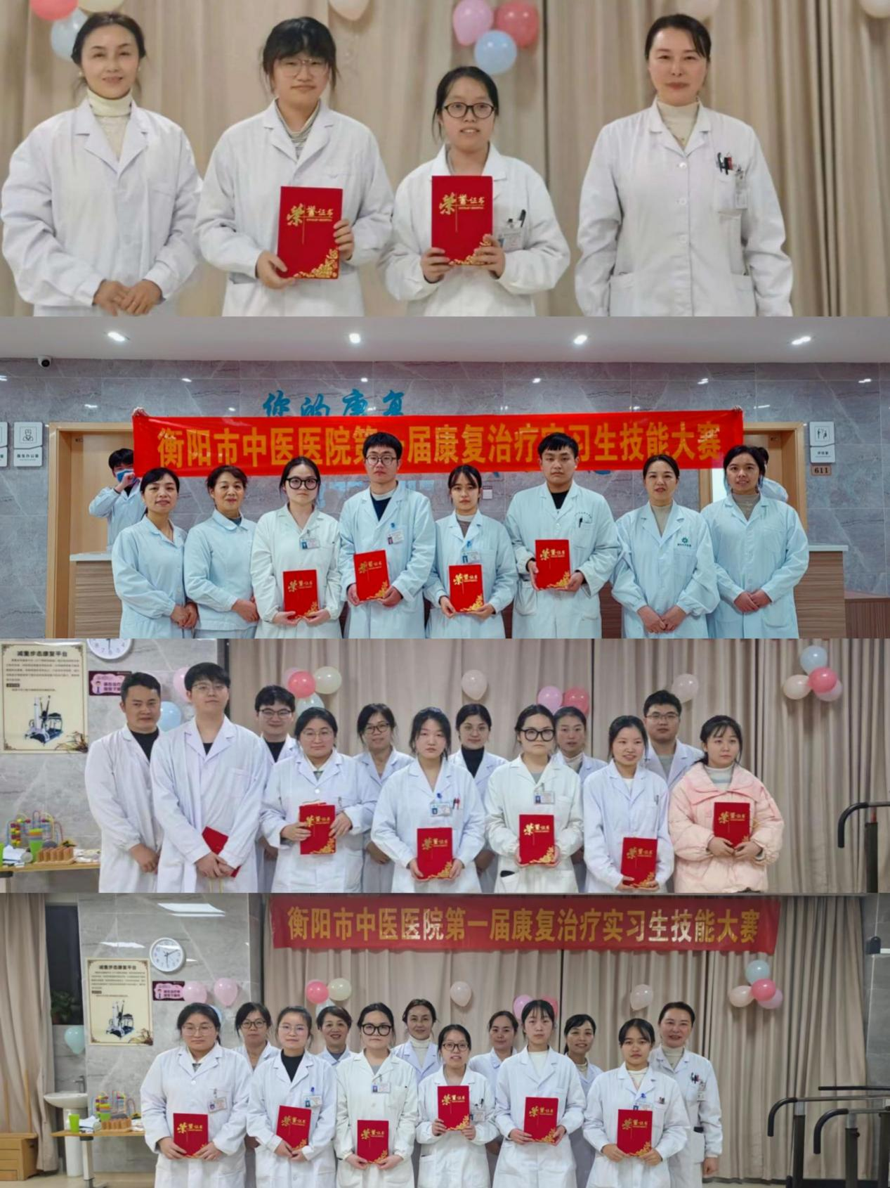 1月4日-1月6日,衡阳市中医医院成功举行了首届康复治疗实习生技能赛。beat365医护学院学子在该院积极参加竞赛,经过激烈的角逐取得了优异成绩。医护学院学生周意园获一等奖,学生曾文卓、宋丹、文曾媛获二等奖,学生马心慧、李芸获三等奖。其中,周意园、宋丹、文曾媛、马心慧还获评“科普达人"称号。