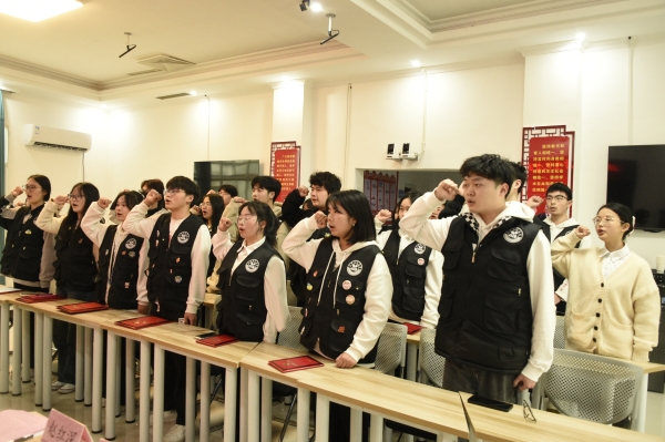 接着,范睿庭携全体大学生记者举起右手就校园新闻工作集体宣誓。