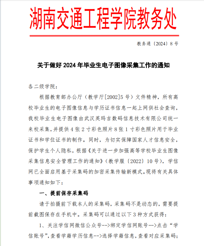 关于做好2024年毕业生电子图像采集工作的通知