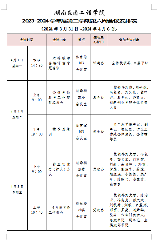 beat365手机版官方网站2023-2024学年度第二学期第六周会议安排表