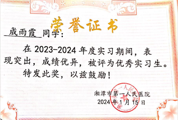 临床实习是医护专业教育的重要环节,是将在校所学的理论知识转化为临床实践技能的过程,同时也是对学生专业知识与技能、沟通、人文关怀等方面综合素质的检验。我院多名实习生在实习医院实习期间,严格遵守医院规章制度和科室的相关要求,在带教老师的辛勤培育与教导下,以优异的表现完成了9个月的临床实习任务。