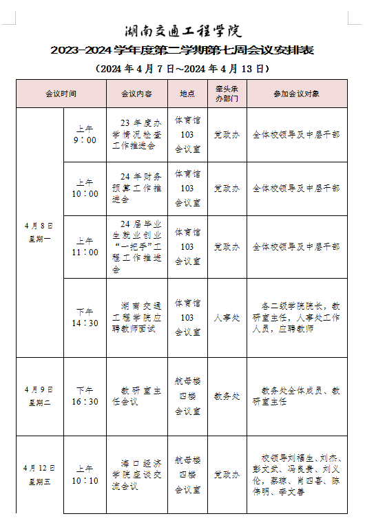beat365手机版官方网站2023-2024学年度第二学期第八周会议安排表