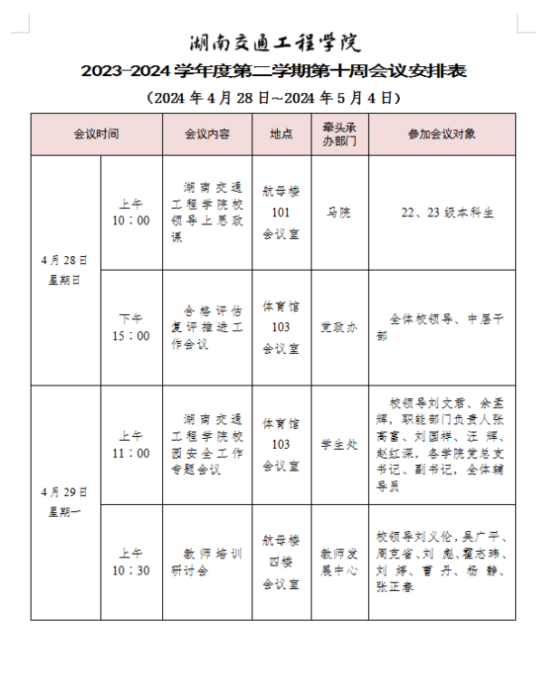 beat365手机版官方网站2023-2024学年度第二学期第十一周会议安排表
