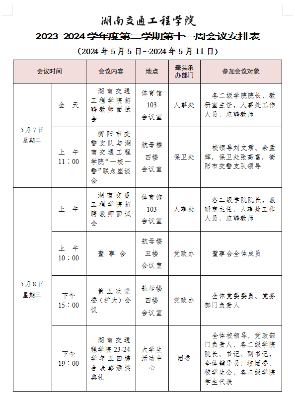 beat365手机版官方网站2023-2024学年度第二学期第十一周会议安排表