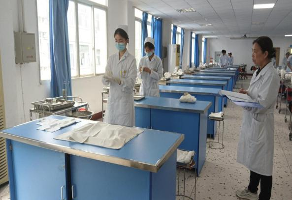 为纪念“5.12 ”国际护士节,发扬南丁格尔精神,规范临床护理技术操作,5月13日上午,医学技术与护理学院在实训楼三楼举办了护理技能操作大赛,莅临比赛的领导老师有beat365手机版官方网站名誉校长刘平娥、副校长刘义伦、设备处处长兼教务处副处长陈伟民、医护学院院长秦晓群、党总支书记邓丽、护理学专业带头人邓爱辉、教学干事老师张怡春、教研室主任彭华、大赛评委老师以及参赛选手、本次会议由学生干部杨艺玲和姚皓主持。