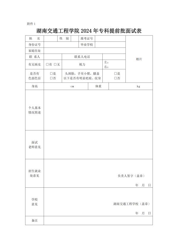 附件1beat365手机版官方网站2024年专科提前批面试表.pdf