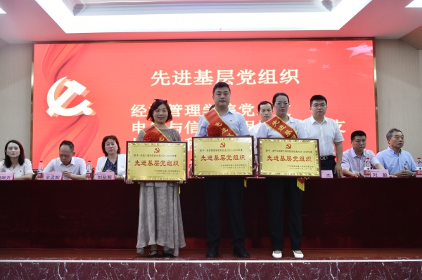 刘秋菊宣读了学校《关于表彰 2023-2024 年度先进基层党组织优秀共产党员优秀党务工作者的决定》《关于表彰 2023-2024 学年度新闻宣传工作先进集体和优秀通讯员的决定》。授予经济管理学院党总支等3 个二级党组织为 “先进基层党组织”称号,授予董晔卉等 53 位同志为“优秀共产党员”称号,授予赵荣华等 8 位同志为“优秀党务工作者”称号;对经济管理学院等 2 个先进集体、赵荣华等 8 名优秀教师通讯员和邓江林等 12 名优秀学生通讯员予以通报表彰。参会校领导分别为获得表彰的个人、集体进行了颁奖并合影,会场响起热烈掌声。