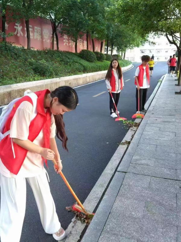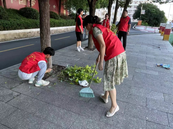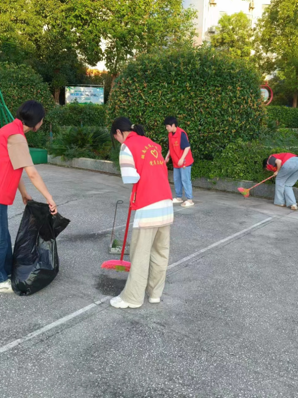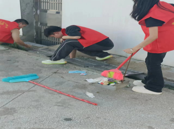 活动中,志愿者们顶着炎炎夏日早早的来到清扫校园的各个角落,手持扫帚和垃圾袋,清扫公共区和教室,红马甲志愿行动吸引了校园同学们的关注,引导了更多的同学加入到这一行动中来。