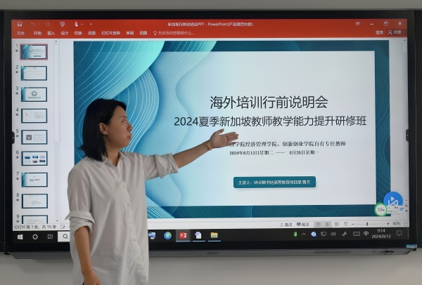 此次赴新加坡培训团副团长、校党委委员、经济管理学院党总支书记赵荣华代表全体参训人员作了表态发言,表示会严格遵守各项纪律和规定,珍惜此次出国培训学习的机会,确保圆满完成培训任务。