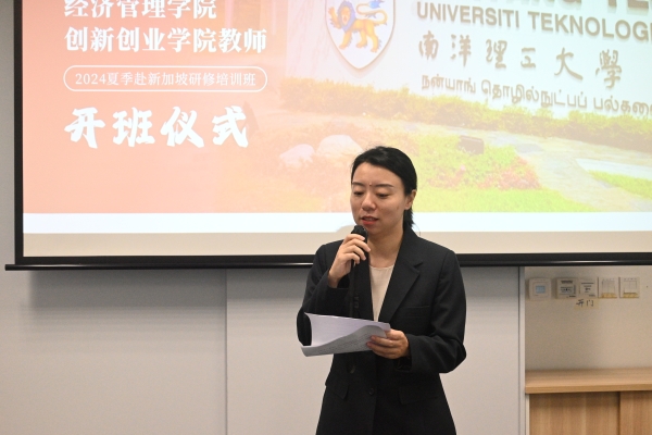 鲁雯系湖南省教育国际交流协会新加坡项目主任。她在致辞中指出,新加坡是个充满活力与创新精神的国家,而新加坡南洋理工大学、新加坡国立大学是亚洲乃至全球最知名的高等学府,我们这次来这里研修培训,将是一个很好的学习机会。学校办学理念先进,许多领域的研究享有世界盛名;学校科技大厦,是点燃创意火花的科研温床;校园环境优美,花园式景观独一无二。这里,我们将有机会接触到前沿知识,拓宽视野,并与新加坡优秀学者们进行深入交流。我们期望,通过这次研修,大家都能获得实质性的提升,达到我们预期学习目标。