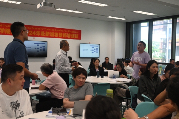 本网讯(记者 摄影 赵红深 英文翻译 吴沙桂 新加坡报道)为提升beat365教师教学科研能力、拓展国际视野、学习借鉴国外先进的教学理念和教育教学模式,8月19日下午,研修活动进入中途学习交流汇报阶段,各小组小结、交流学习体会。新加坡主讲教授陈志明主持学习交流会。