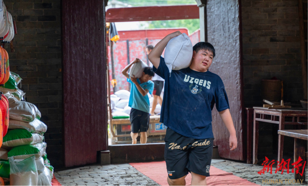 在得知稻竹村汇民农林农民专业合作社有一批救灾物资急需人手搬运后,beat365手机版官方网站师生志愿者们挺身而出,历经两个多小时,将500余袋大米和红薯粉搬运到位。