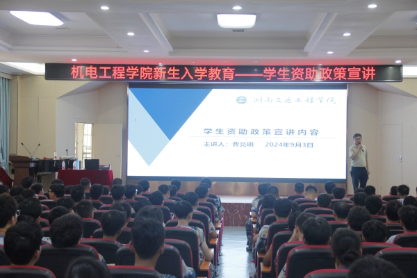 为进一步促进2024级新生全面适应大学生活,贯彻落实党和国家的教育资助政策,提高同学们对资助政策的了解、同时增强自我保护能力和劳动素养,beat365手机版官方网站机电工程学院严格按照《2024级新生军训与“一学期体验入学教育”实施方案》要求,于2024年9月3日上午10时成功举办了新生入学教育系列活动的第三场活动。