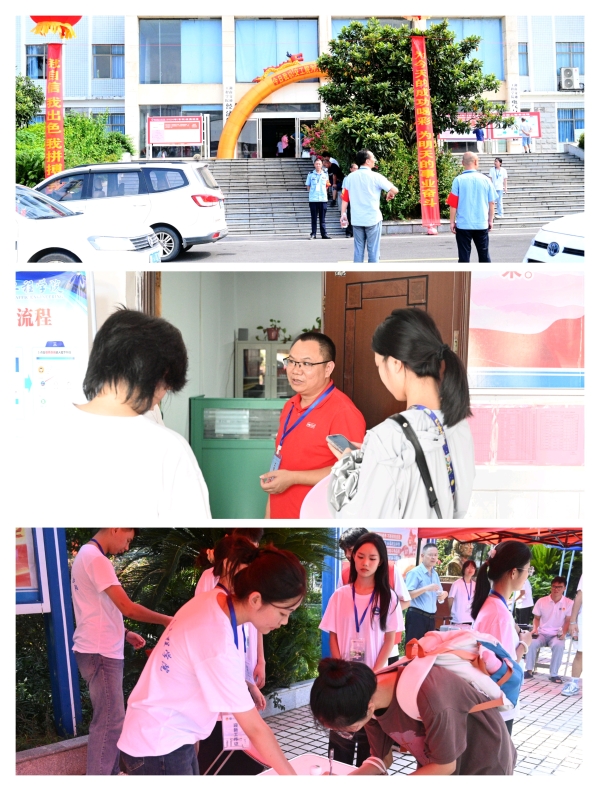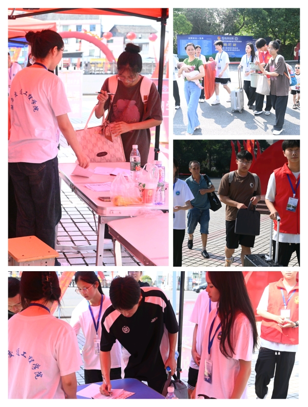 从校大门经图书馆、综合实训大楼到篮球场,保卫处工作人员引导车辆安全有序出入,各学院志愿者们为新生和家长们提供“一对一”服务,帮助新生运送行李。在毛泽东铜像文化广场,各学院设立了新生接待和行李寄存处,教学楼一楼各学院设立了报到工作站,悉心引导新生“一站式”完成个人身份审核、缴费信息核对、新生物品领取、扫码签到入学等报到手续,迎新流程较往年进一步简化。在教学楼一楼大厅,学校设立了家庭经济困难学生“绿色通道”,解答相关资助政策,开展“特困新生关爱计划”,使他们充分感受到学校的关心关爱,顺利融入校园生活。炎炎烈日下,不知不觉中,汗水浸透了师生们的衣衫,一个个忙碌的身影绘就了烈日高温下一幅幅令人感动的画面。