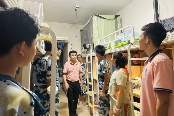 2024年9月6日晚,随着夜幕降临,结束了一天的军训。机电工程学院迎来了一股温馨而有力的关怀之风。学院党总支书记罗斐、副书记辛敬凤携手新生辅导员:曹亮明、夏翠云、潘登峰、唐辉、何立权等,深入学生宿舍,对居住在18、25、6、8栋的新生们进行了全面而细致的关怀与指导。