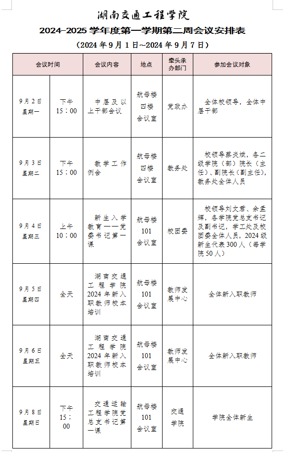 beat365手机版官方网站2024-2025学年度第一学期第一周会议安排表