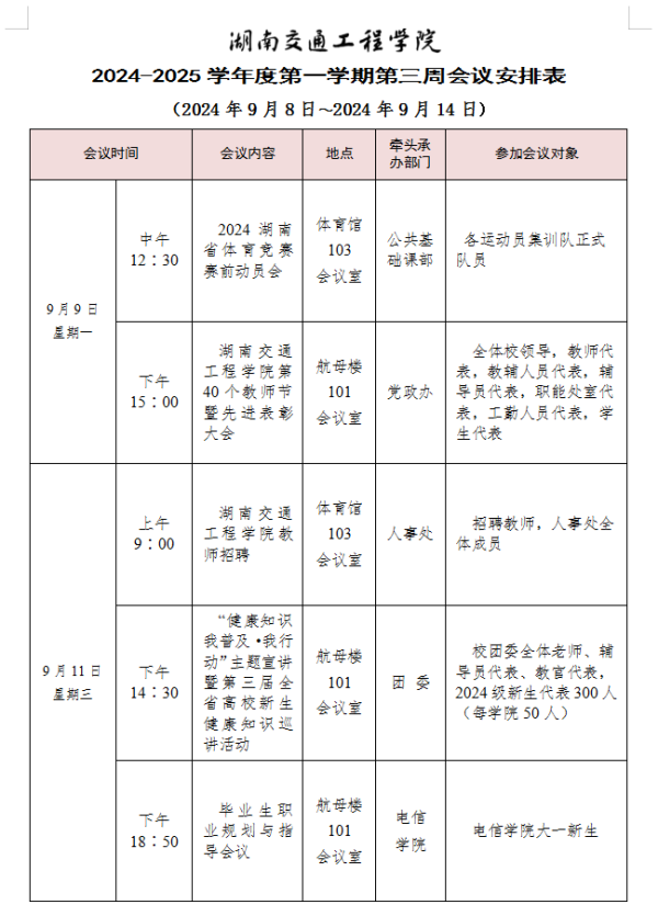 beat365手机版官方网站2024-2025学年度第一学期第三周会议安排表