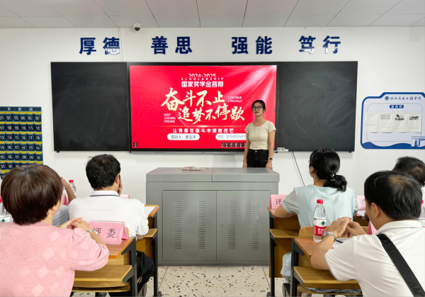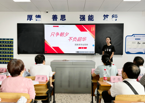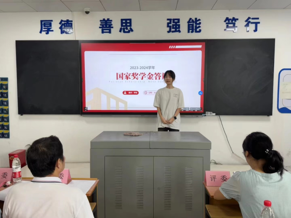 本次评审严格按照国家奖学金评审的相关政策和规定,8名候选人采取PPT演讲的方式,依次从思想道德、学习科研、综合素质、社会实践等多方面进行风采展示,答辩过后评委进行提问并给予点评。大会最后,秦晓群院长在指导中肯定了候选人的能力,并希望更多的同学们积极进取,考研纳入自己大学规划中,积极参加比赛,确立人生目标,开拓眼界。邓丽书记也指出了作为学生需要将德智体美劳全面发展,增强自身的综合实力,树立正确方向,以此更好的推动进步,引导未来。