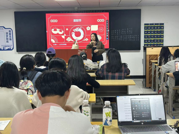辅导员们通过 PPT 和生动的讲解,向同学们详细介绍了重阳节的由来、历史演变以及传统习俗。同学们了解到,重阳节又称“老人节”,在这一天,人们通常会登高远眺、赏菊、插茱萸、吃重阳糕等,这些习俗承载着人们对美好生活的向往和对长辈的祝福。为了让同学们更加深刻地体会到敬老爱老的重要性,辅导员还组织同学们分享自己与爷爷奶奶、外公外婆之间的温馨故事。同学们纷纷踊跃发言,讲述着长辈们对自己的关爱以及自己与长辈相处的点滴。有的同学回忆起爷爷奶奶给自己做的美味饭菜,有的同学说起外公外婆给自己讲的睡前故事,这些平凡而又温暖的回忆,让同学们感受到了长辈们的深深爱意。同学们围绕“如何在日常生活中做到尊老敬老”这一话题展开了热烈的讨论。大家纷纷表示,要从身边的小事做起,如多关心长辈的生活、多陪长辈聊天、帮长辈做一些力所能及的家务等。同学们还分享了自己在日常生活中已经做到的尊老敬老的行为,如给爷爷奶奶捶背、给外公外婆打电话问候等,这些行为得到了老师和同学们的一致认可。
