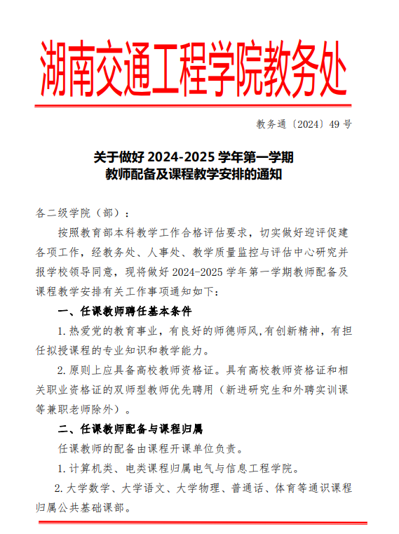 关于做好 2024-2025 学年第一学期教师配备及课程教学安排的通知pdf