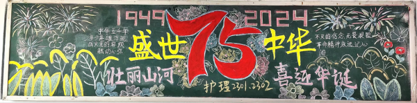 活动期间,各班学生齐动脑策划,以图文方式描绘祖国绚丽华章,一起深情盛赞祖国伟大成就,用一幅幅构思新颖、主题鲜明的黑板报向祖国母亲75岁生日献礼。同学们在黑板报中歌颂中国共产党的光辉业绩,歌颂祖国取得的伟大成就。展示了医护学子开拓创新、与时俱进的精神风貌。经过整个学院所有班级的积极参与和相关负责人进行商讨评比,最终将获奖班级公示。