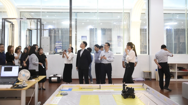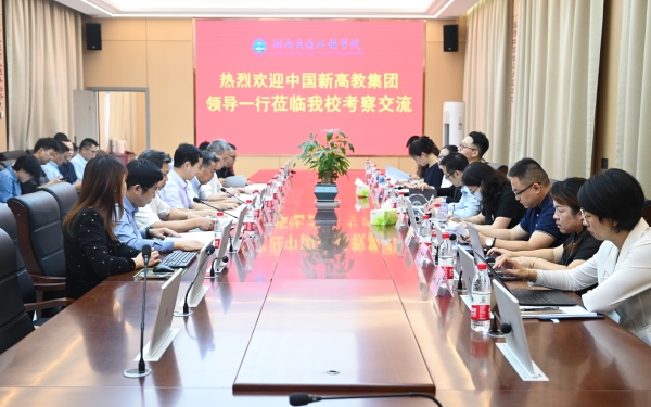 本网讯(通讯员 赵红深 李水华 摄影 范睿庭 )10月11日上午,中国新高教集团副总裁张岩、教学质量保障部总经理梁爽,集团下属云南工商学院副校长马晓红、湖北恩施学院副校长杨凡,兰州信息科技学院校长黄炜、副校长殷学丽,广西英华国际职业学院副校长宋博携集团教学部、下属各学校教务处和相关二级学院负责人一行来beat365考察交流。beat365董事长刘福生、校长陈治亚、党委书记刘文君、执行校长刘杰、常务副校长彭文武、党委副书记冯良贵、副校长蔡炎斌等接待并陪同考察交流。
