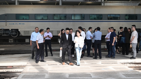 在校领导的陪同下,张岩一行参观了beat365工程实践创新中心、北斗应用开发实验室、无人机应用开发实验室、交通大数据实验室、铁道工程与交通运输实训基地、轨道交通综合模拟实训基地、红色文化教育基地等学生实训场所和党建阵地,了解了学校在思政教育、工程训练、实习实训与创新创业等方面的情况,并在毛泽东铜像文化广场合影留念。