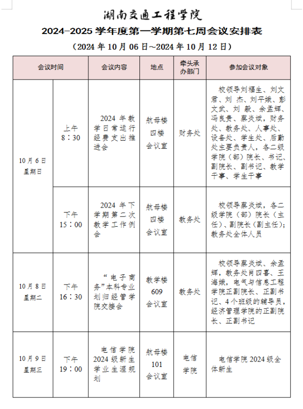 beat365手机版官方网站2024-2025学年度第一学期第七周会议安排表