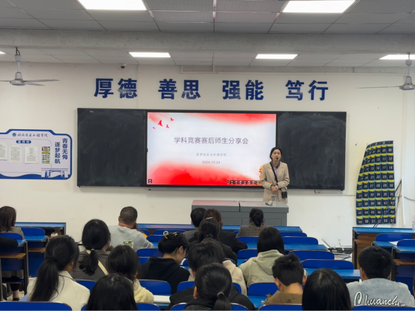 为鼓励学生积极参加各类学科竞赛活动,以赛促学,以学强赛,激发学生的兴趣和潜能,培养学生的科研能力和创新精神。10月24日,医护学院组织开展学科竞赛交流会,参会人员有院长秦晓群、党总支书记邓丽、副院长廖小立、党总支副书记兼团总支书记刘建军、李雨静、李惠婷老师和学生代表等40余人。