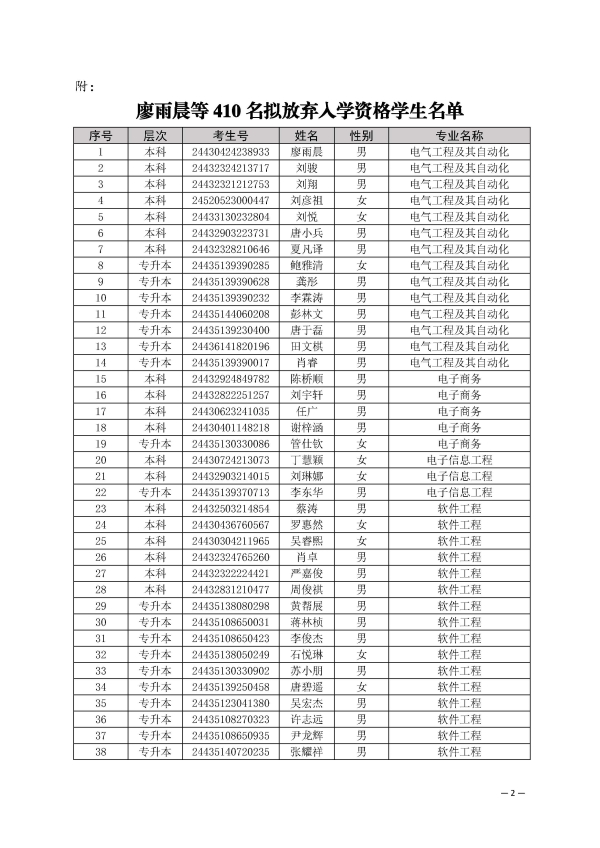 关于对向南等410名2024年新生拟放弃入学资格的公示
