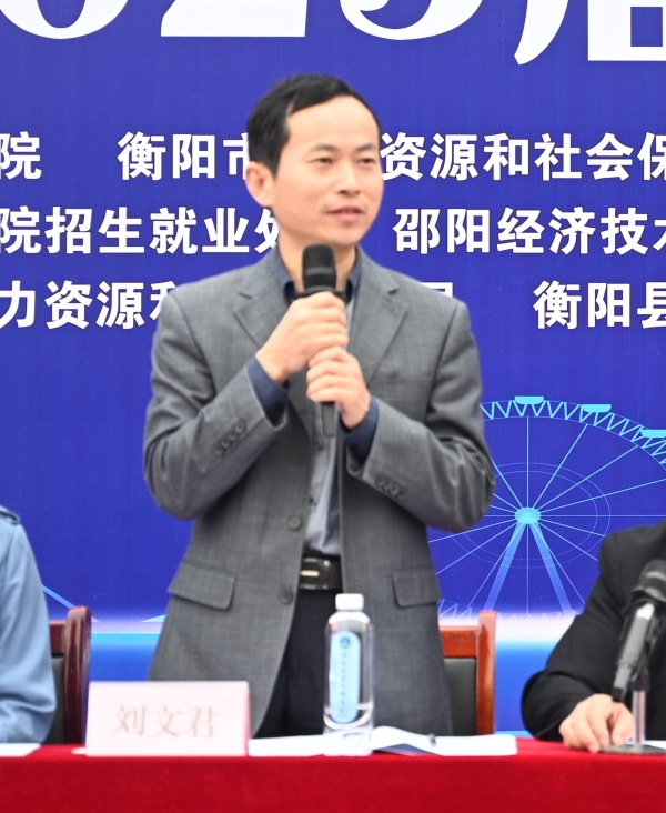 学校党委书记刘文君出席双选会开幕式并致欢迎词,衡阳市人力资源和社会保障局副局长刘文文、衡阳市就业服务中心主任王朝晖,邵阳市就业服务中心主任吕瑶琦、副主任吴弘宁,衡阳市蒸湘区人力资源和社会保障局局长刘峥嵘、副局长蒋国华,衡阳市蒸湘区人力资源服务中心主任张鑫,衡阳县人力资源服务中心主任艾琳、副主任邹树尉等领导莅临双选会指导!常务副校长彭文武主持,名誉校长刘平娥、副校长余孟辉及相关职能部门负责人、各二级学院党总支书记副书记参会。