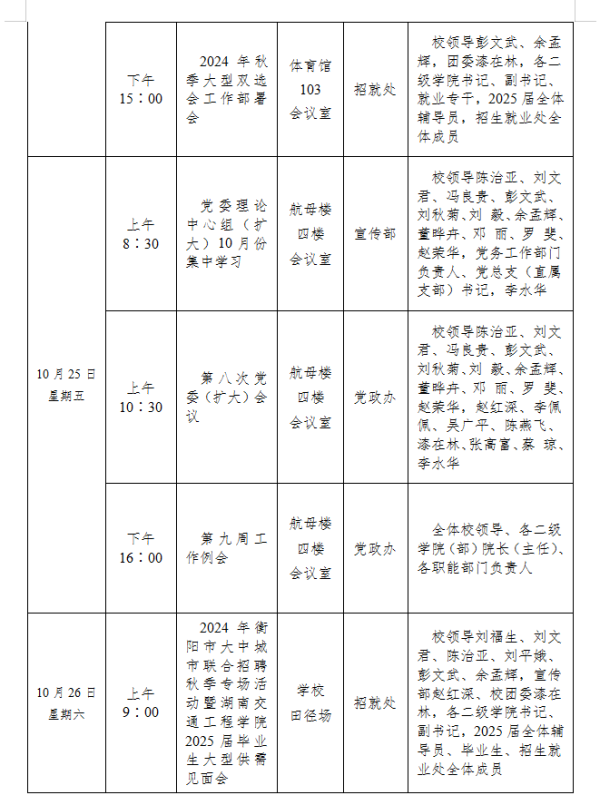 beat365手机版官方网站2024-2025学年度第一学期第八周会议安排表