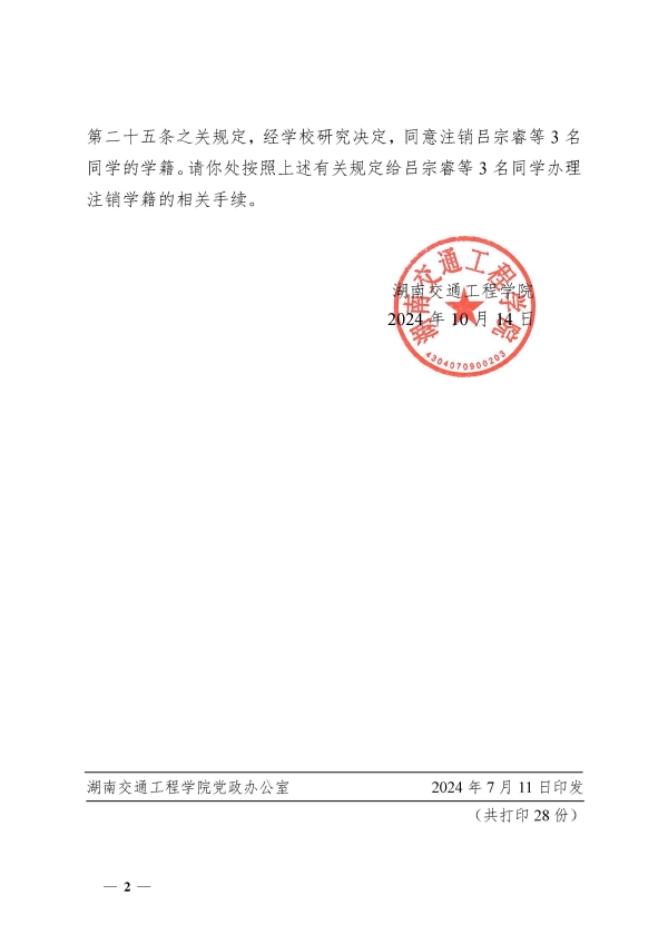 关于给吕宗睿等3名同学注销学籍的决定(湘交院学管〔2024〕27号)