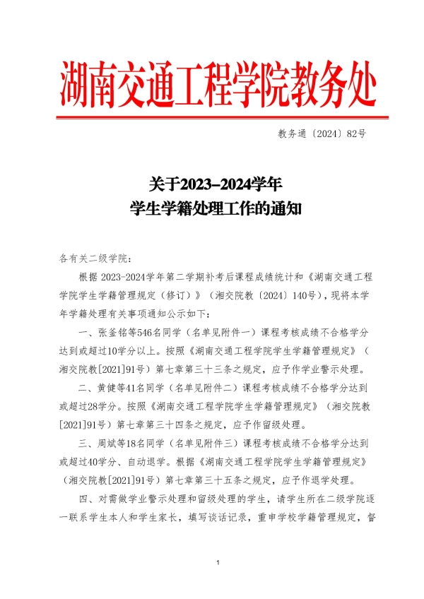 2024年学生学籍处理工作的通知(教务通〔2024〕82号 )