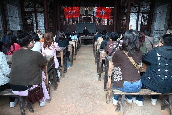 10日上午,在茅坪八角楼和龙江书院分别开展了“坚定执着追理想的井冈山精神”和“革命洪流汇大海”的主题教学。在大井朱毛旧居,大家