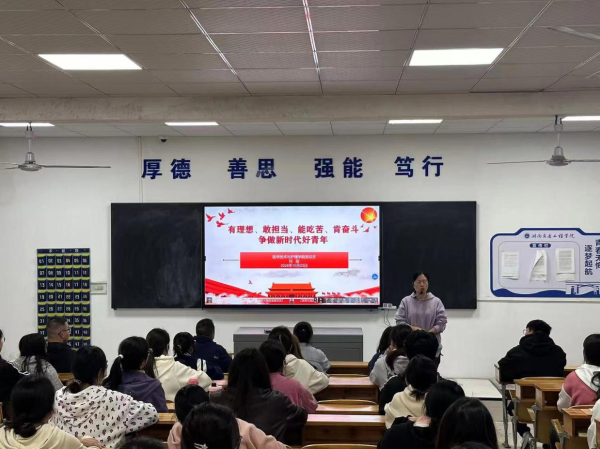 课堂上,学院党总支书记丽以《争做新时代好青年》为题,勉励广大学子要有理想、敢担当、能吃苦、肯奋斗,引导学生树立正确的世界观、人生观和价值观,培育其社会责任感和使命感。