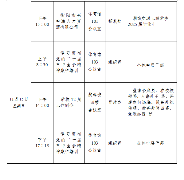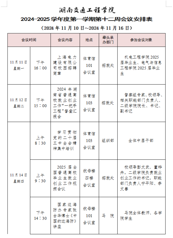 beat365手机版官方网站2024-2025学年度第一学期第十一周会议安排表