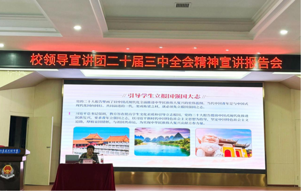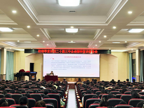 深入领会党的二十届三中全会精神增强学生理想信念引导学生深刻认识国家发展战略与个人成长的紧密联系推动二十届三中全会精神在校园内落地更生,医护学院于1112日晚上7点,在航母楼101组织开展宣讲活动,由校领导刘平娥名誉校长为医护学院宣讲党的二十届三中全会精神。学院党政领导、全体教师和学生代表300余人参加会议。会议由党总支书记邓丽主持。