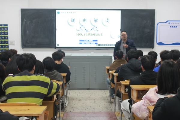 本网讯(通讯员 何旭阳 陈涛)11月26日晚7点,电气与信息工程学院(以下简称电信学院)在教学楼615教室成功举办了“职业规划大赛规则解读”会议。本次会议由电信学院党总支书记刘忠明主讲,各班班长、团支书、学习委员等学生干部出席。