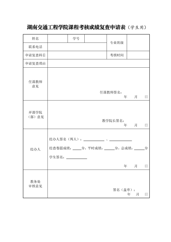 beat365手机版官方网站课程考核成绩复查申请表(学生用)
