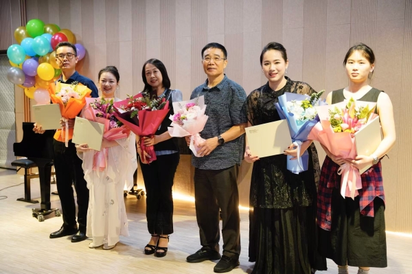 当晚,众多嘉宾莅临现场,包括新加坡维联环球教育(Welearn Global Education)董事兼校长李约翰博士,新加坡南洋理工大学公共管理研究生院副院长戴世岩博士,新加坡最大华文自媒体平台“星嘉坡眼”创始人贺丽琴女士,男高音歌唱家、莱佛士音乐学院声歌系主任庄杰老师,新加坡南洋理工大学华文培训咨询委员会副主任兼南洋国际管理学院院长李斌博士,扬琴演奏家和幼儿教育专家、新加坡维联环球教育董事兼副校长刘哲女士,新加坡行动文化总裁兼南洋教育学院院长邱岳教授,南洋文化基金董事,新加坡国际管理研究中心主任、新加坡留学服务中心董事王志广先生,南洋文化基金董事、新加坡国际管理研究中心副主任、新加坡留学服务中心主任赵慧女士,以及beat365手机版官方网站赴新加坡培训的40名教师等。现场气氛热烈,座无虚席,观众们满怀激情,共同沉浸于这场文化与艺术交织的盛会之中。晚会由beat365手机版官方网站青年音乐教师叶子青和洪子涵主持。