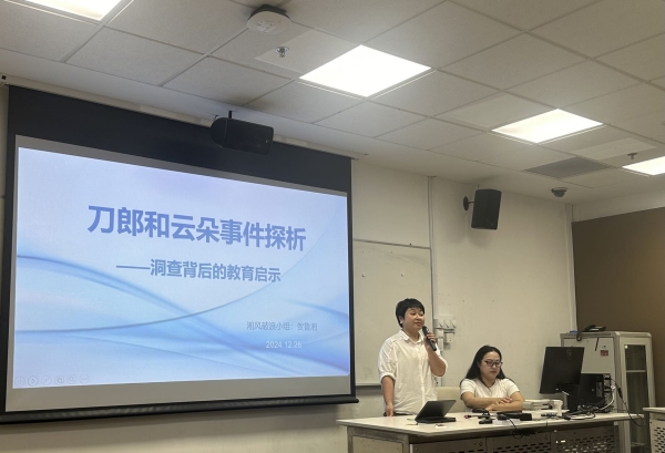 第三组贺鲁湘老师围绕《为刀郎和云朵事件探析——洞察背后的教育启示》展开演讲。贺老师首先详细回顾事件发展脉络,接着深入探讨教育行业师徒传承模式的现状、挑战与困境,重点分析师徒关系对教育质量的重要性及影响。最后,结合云朵事件提出对高校教育工作者的启示,引发在场听众对教育改革和师德建设的深刻思考,演讲内容丰富、条理清晰,富有启发性。