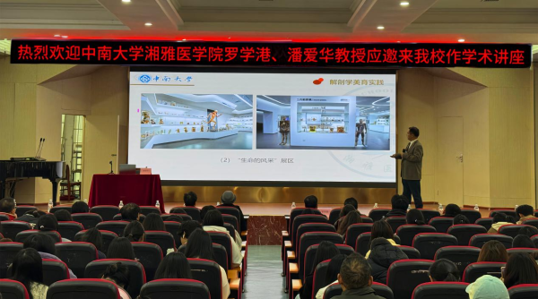 本网讯(通讯员 李水华 刘建军)11月21日下午,中南大学湘雅医学院博士生导师、国家教学名师罗学港教授,基础医学院形态实验中心主任、湖南省解剖学会理事长潘爱华教授,南华大学衡阳医学院人体形态中心主任周小兵教授受邀来beat365作学术讲座,医学技术与护理学院300余名师生聆听这一场精彩纷呈的学术盛宴。