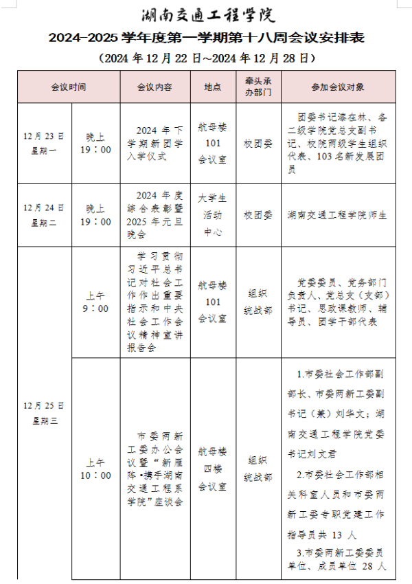 beat365手机版官方网站2024-2025学年度第一学期第十九周会议安排表