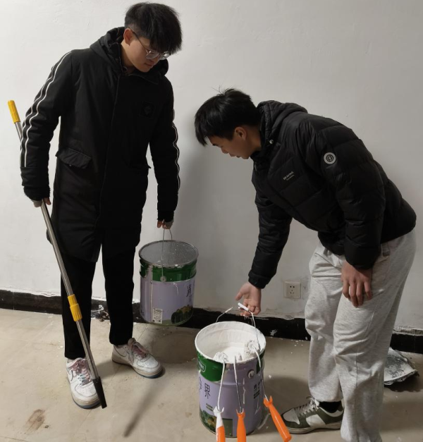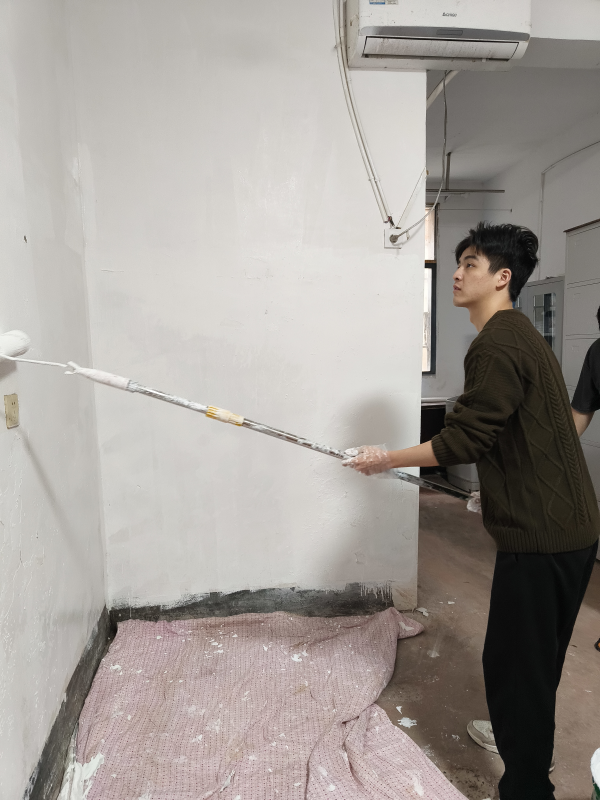 活动当日,他们身着便装,熟练地搅拌涂料、挥舞刷子,墙上污渍渐消,墙面洁白如新。大家分工协作,交流粉刷技巧,现场热火朝天。